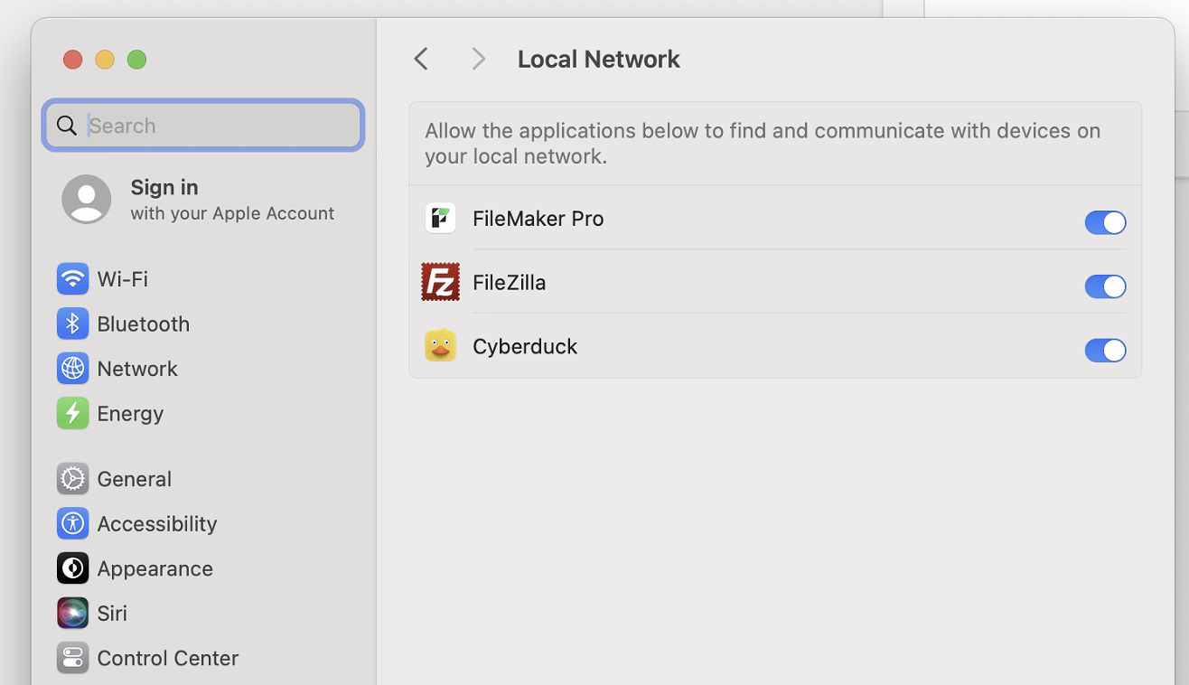 If printing to a networked thermal printer on your local network you may get this error if Security and Privacy does not have Local Network access enabled for NRGship and/or FileMaker Pro.