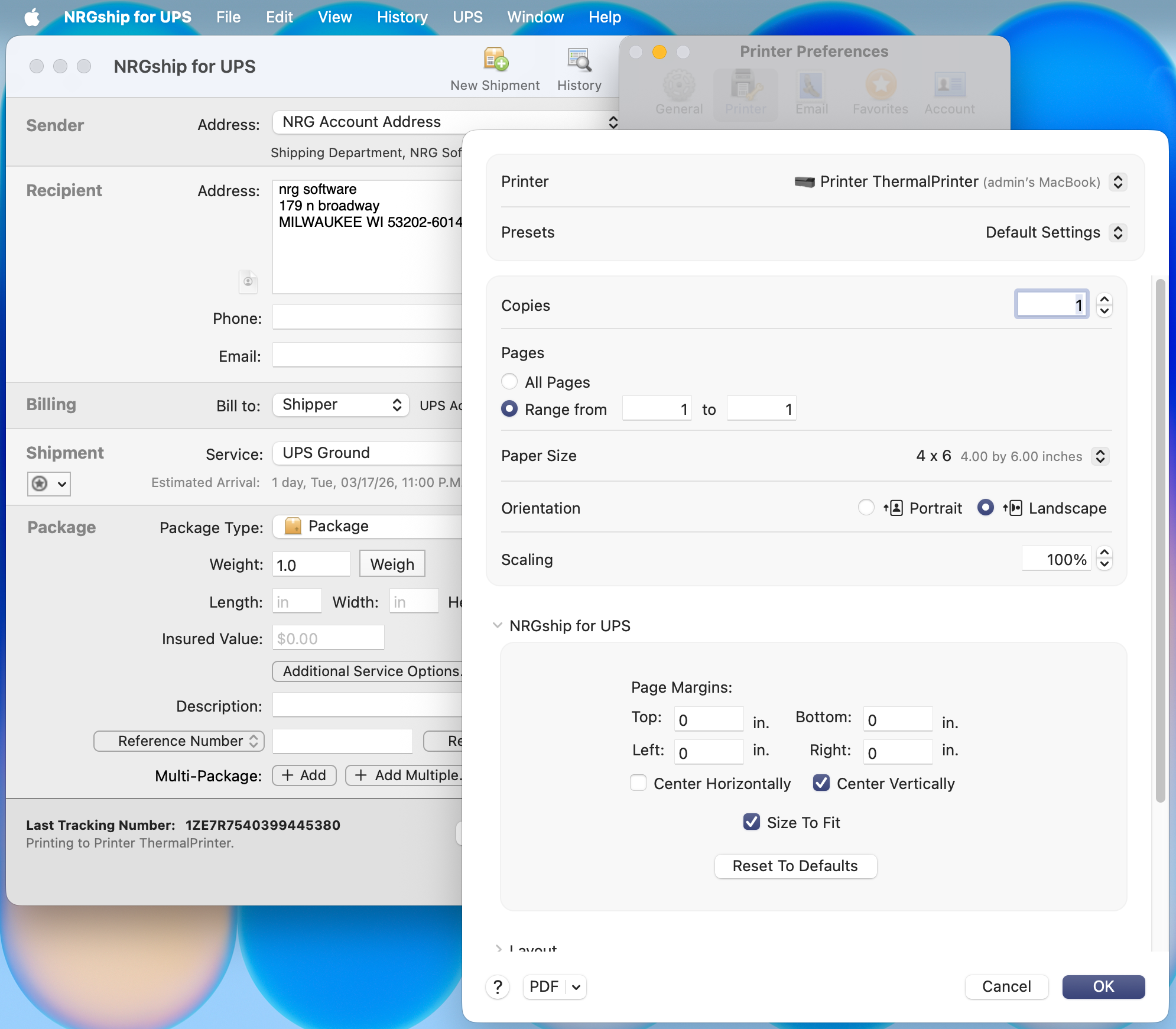 Can I print to my Rollo Printer from NRGship for UPS?